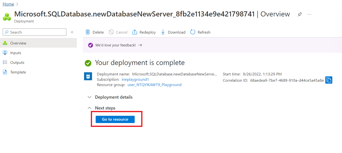 Wait for the resources to get deployed and after deployment is complete, click on the "Go to resources" option to view the resources.